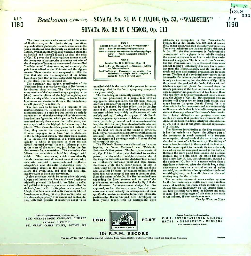 商品コード:1349-030p[HMV] ソロモン・カットナー(pf) / ベートーヴェン:Pfソナタ21番「ワルトシュタイン」, 32番