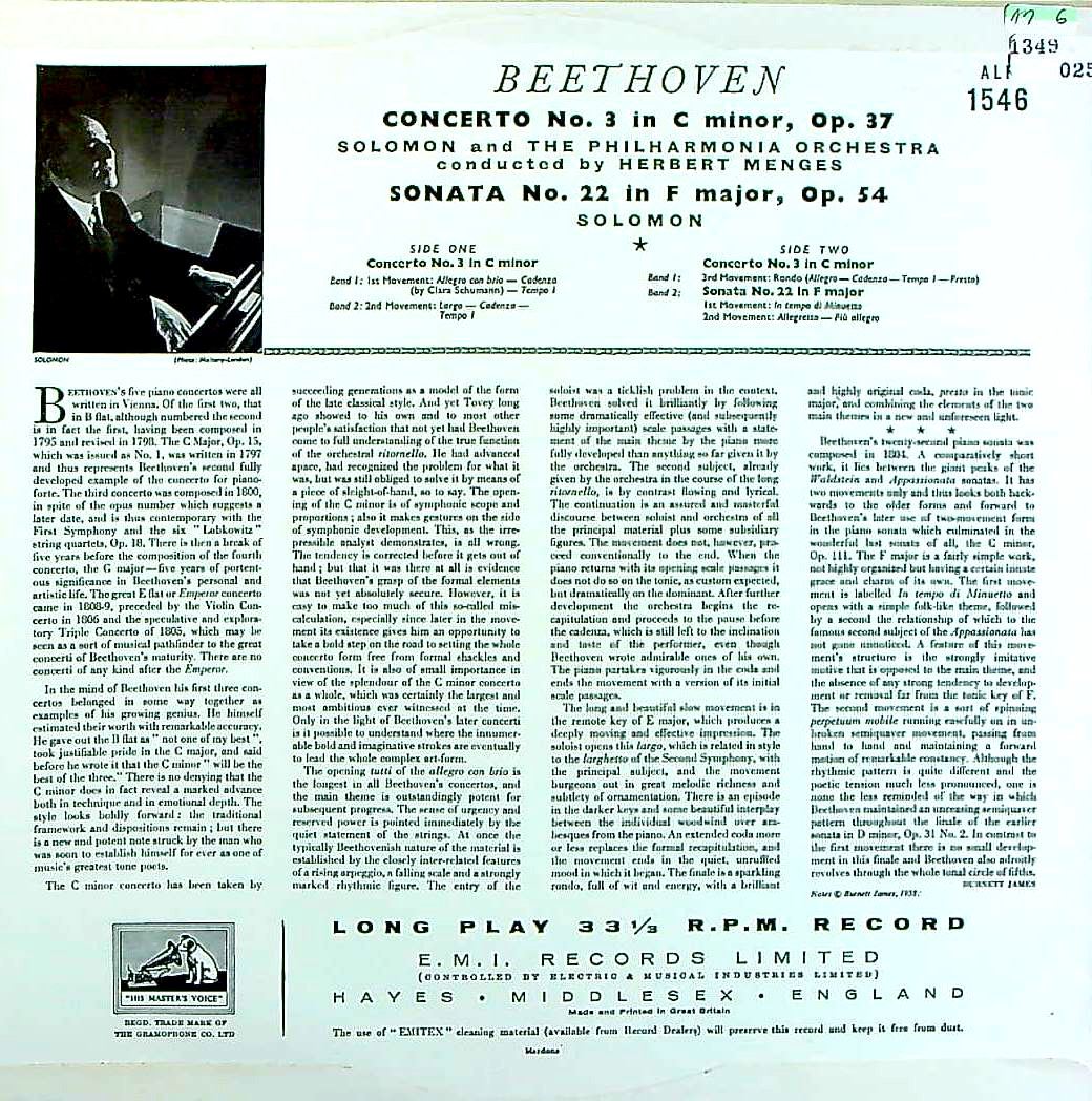 商品コード:1349-025p[HMV] ソロモン・カットナー(pf) / ベートーヴェン:Pf協奏曲3番, Pfソナタ22番