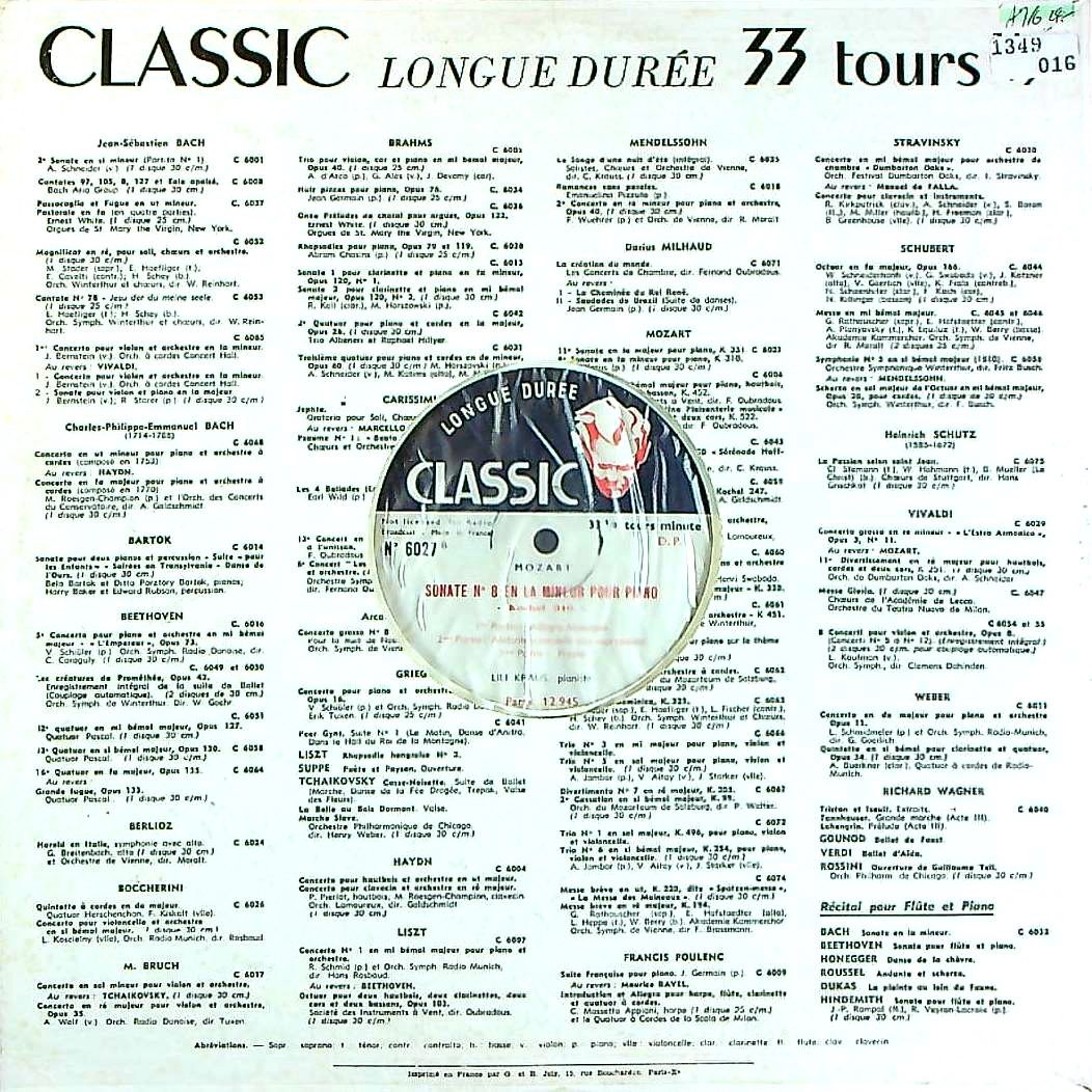 商品コード:1349-016p[CLASSIC] L.クラウス(pf) / モーツァルト:Pfソナタ11番K.331「トルコ行進曲付き」, 8番K.310