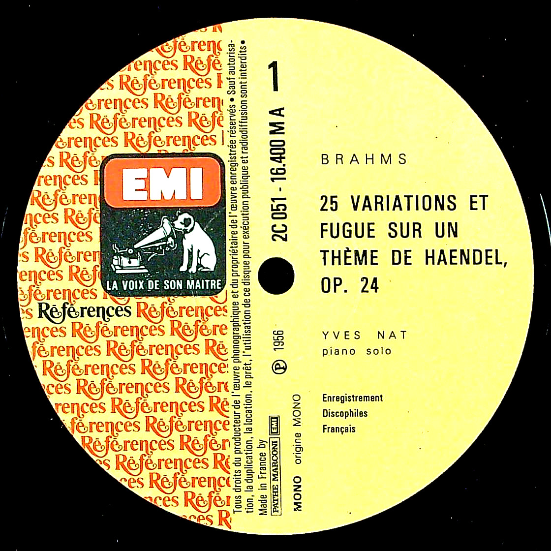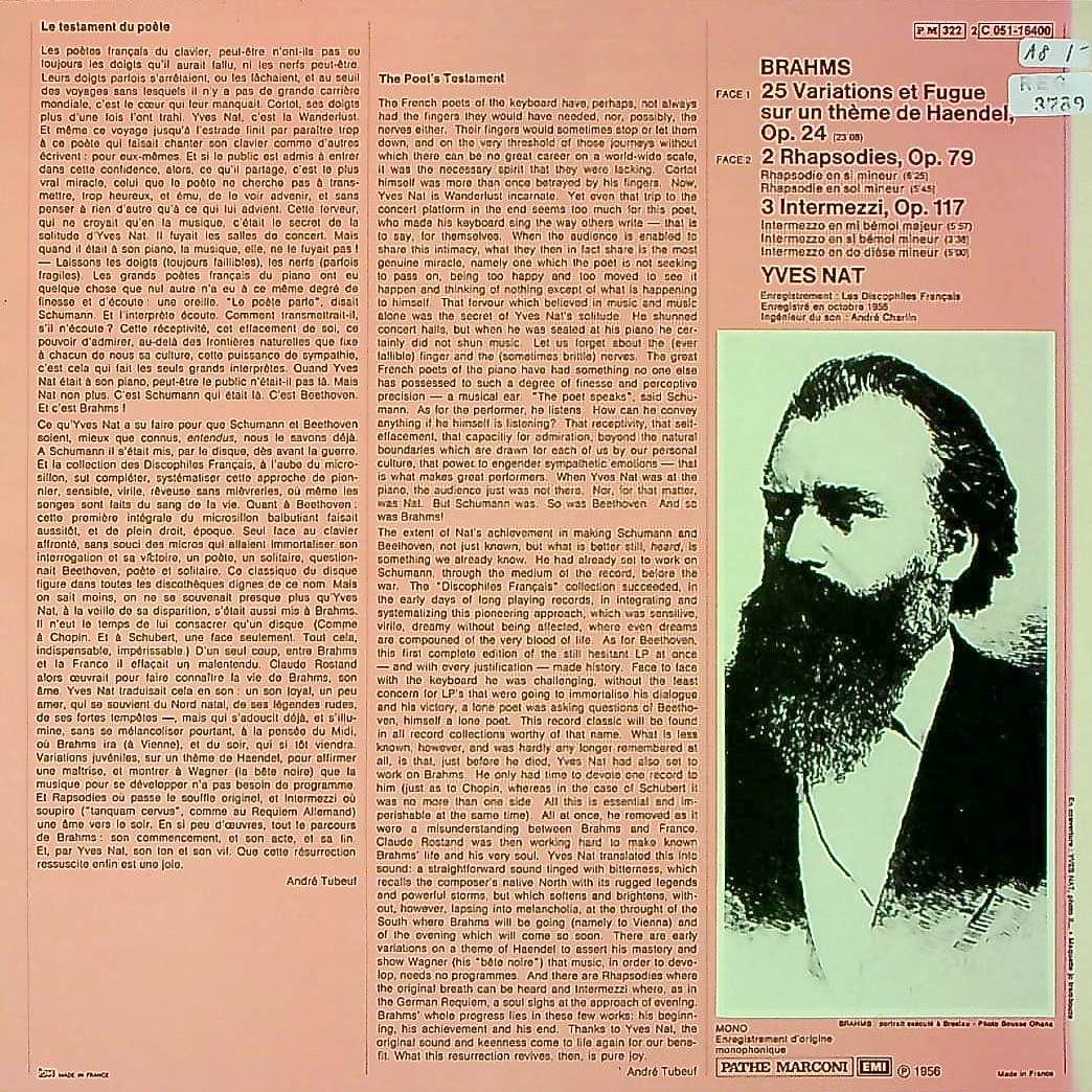 商品コード:REG-3789[仏VSM] Y.ナット(pf) / ブラームス:ヘンデルの主題による変奏曲とフーガ 他