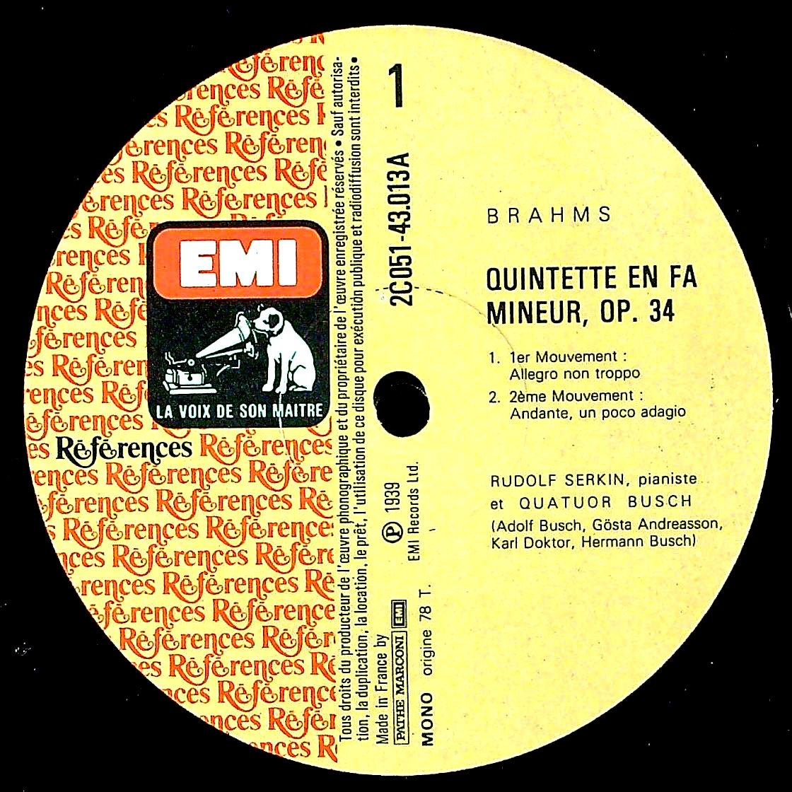 商品コード:REG-3788[仏VSM] R.ゼルキン(pf) ブッシュQt. / ブラームス:Pf五重奏曲