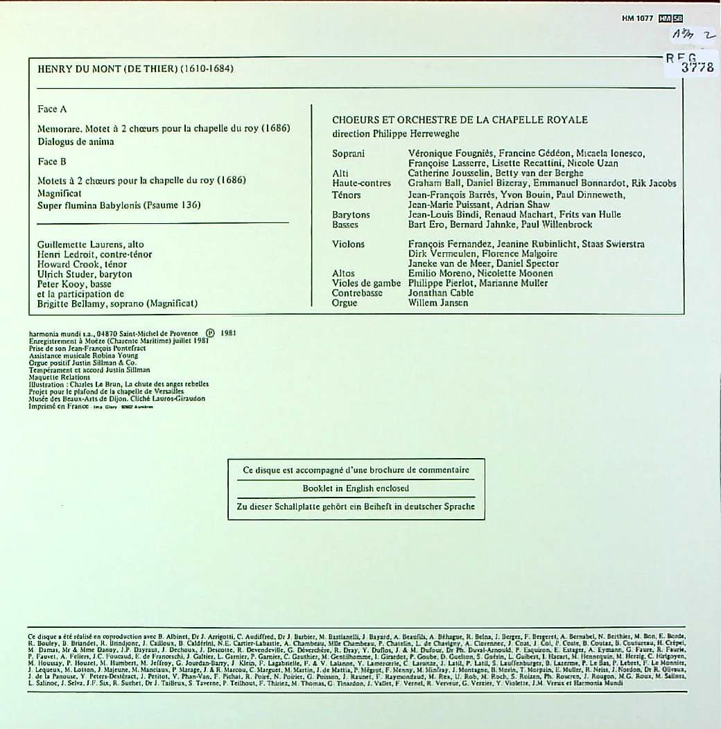 商品コード:REG-3778[仏HM] G.ローレンス(a) 他/ グラン・モテット集/デュ・モン:Memorare 他