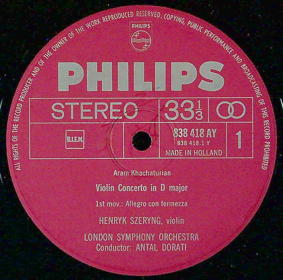 商品コード:1351-057[PHILIPS] H.シェリング(vn)/ ハチャトゥリアン:Vn協奏曲 ニ短調