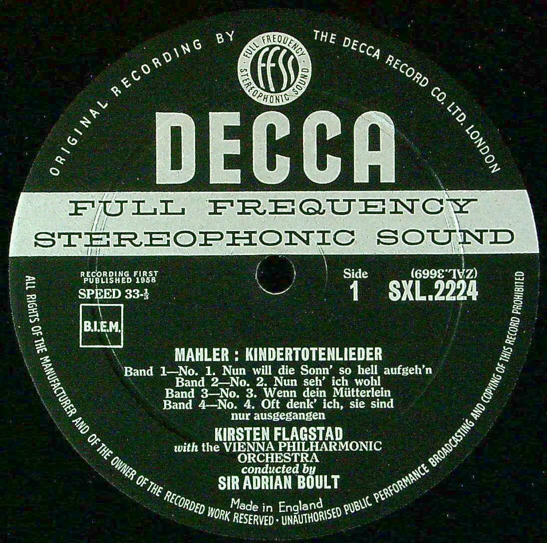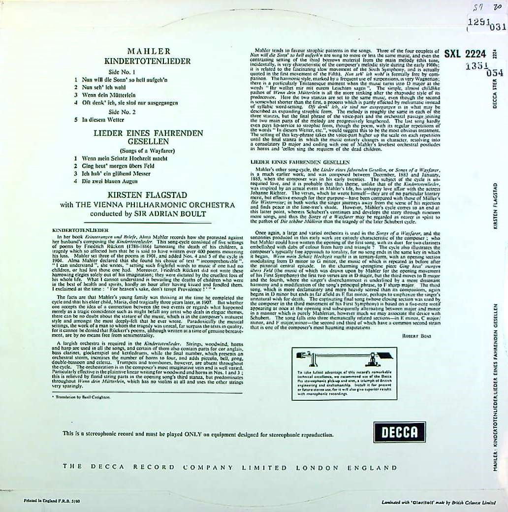 商品コード:1351-054[DECCA] K.フラグスタート(s)/ マーラー:亡き子を偲ぶ歌, さすらう若人の歌