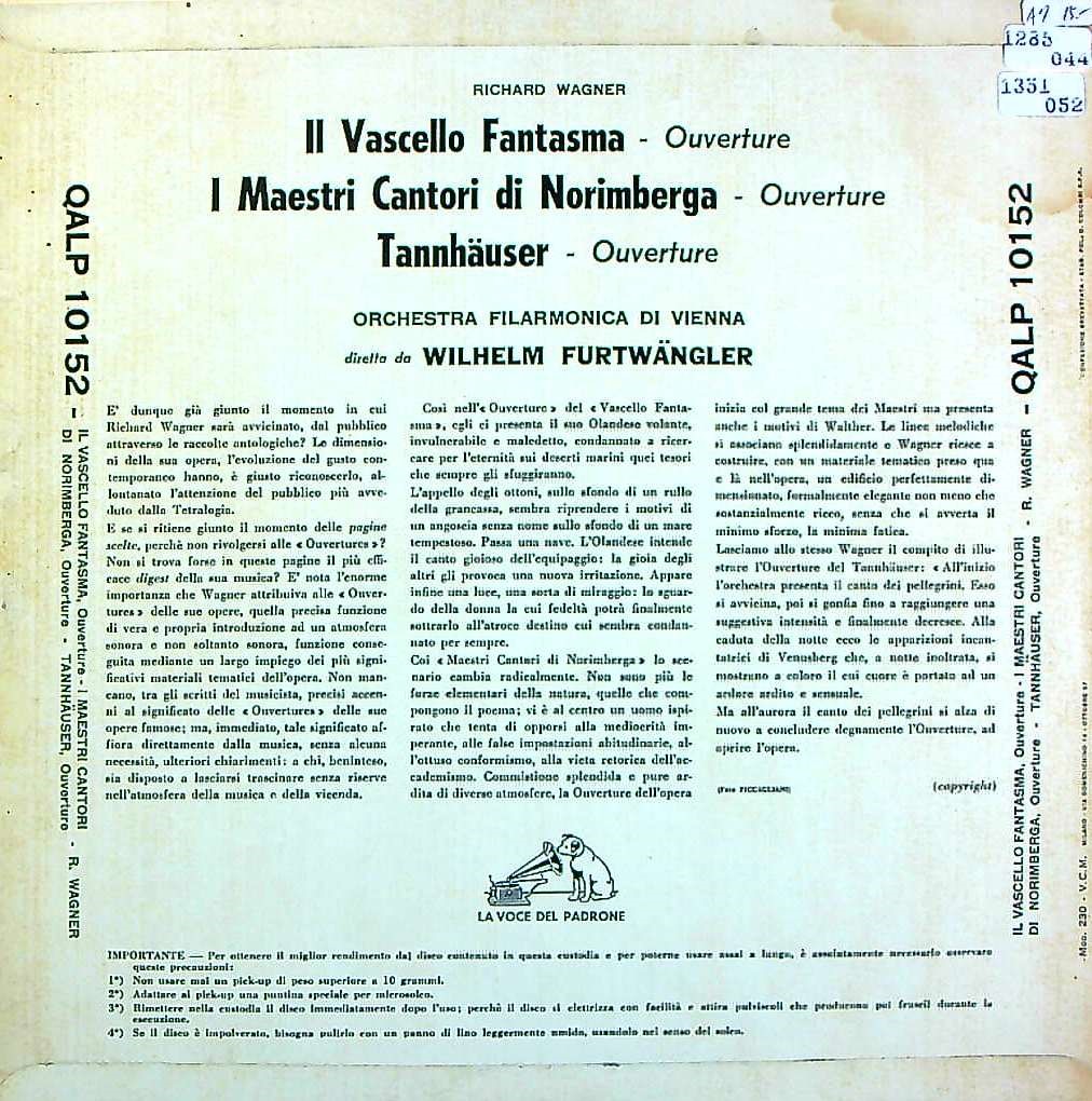 商品詳細:ワーグナーの有名な序曲3曲を収める。"オランダ人"は1949年3/4月、この録音は他に1950年の伊トリノがあるのみ。"マイスタージンガー"は1949年4月、ウィーンpo.はこれのみ。"タンホイザー"は1952年12月。ウィーンpo.とは1949年2月に録音があり、SP未発売で仏協会SWF 8001がある。ワーグナーの代表的序曲の良い時期のものを集めており、レベルは高い。イタリアでは1958年頃フランスのマスターを使ってイタリアEMIの工場で製造したようであるが音質は驚くほどダイナミックでパワフル!超が付く珍品!