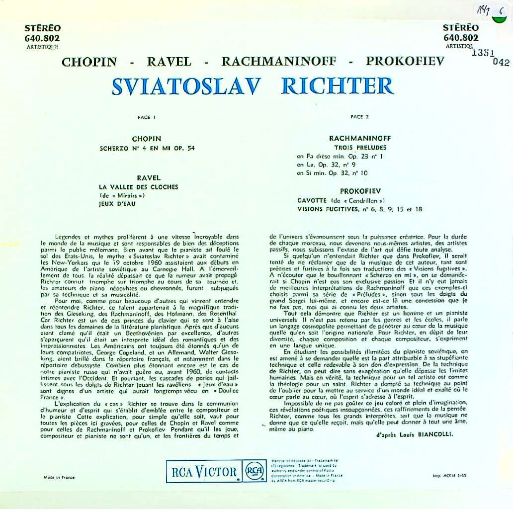 商品コード:1351-042[RCA] S.リヒテル(pf) / リヒテル・カーネギーホール・リサイタル