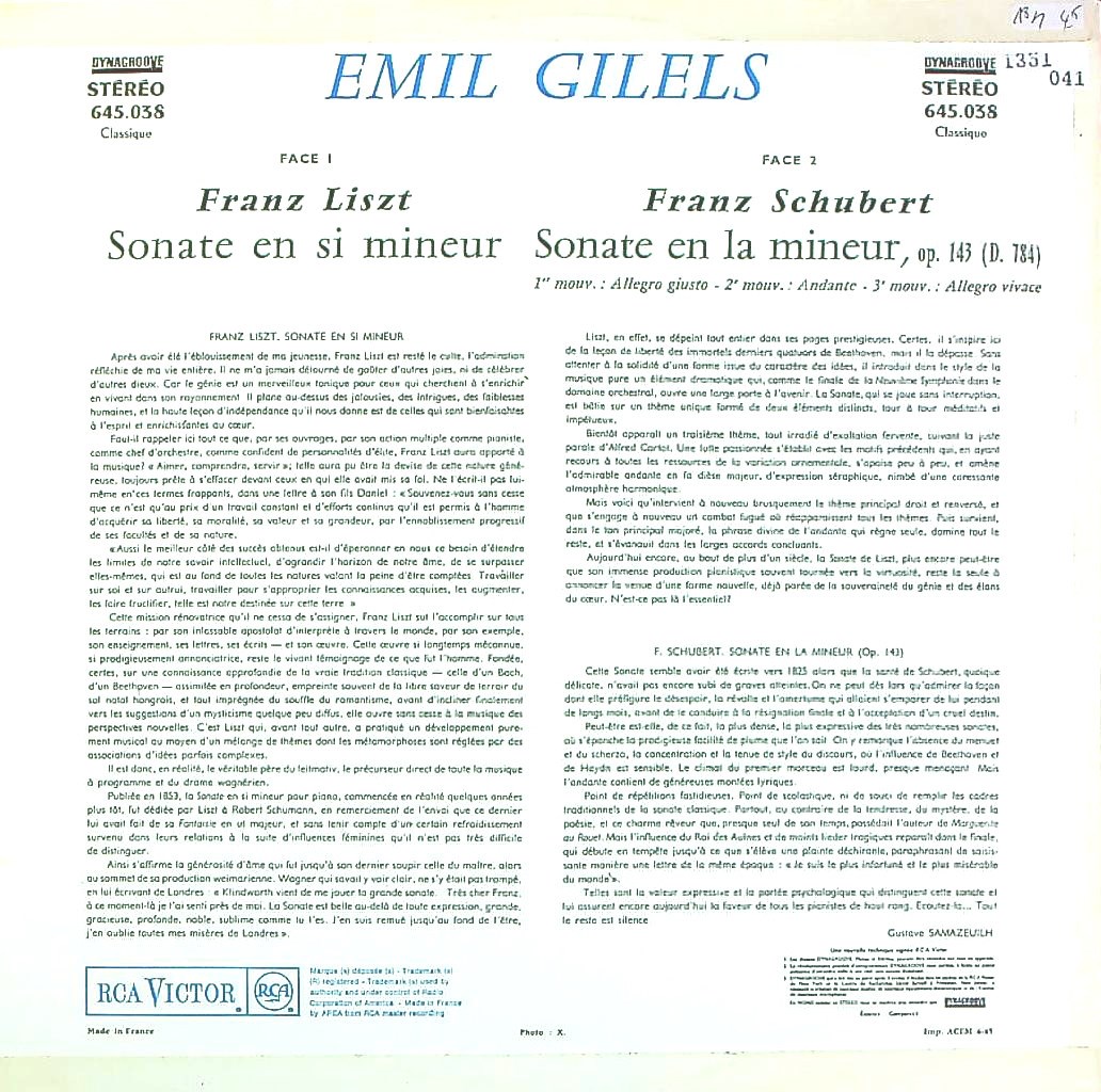 商品コード:1351-041[RCA] E.ギレリス(pf) / Pfソナタ/リスト, シューベルト:14番