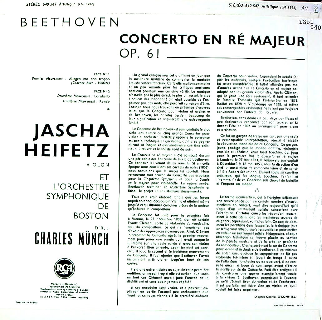 商品コード:1351-040[RCA] J.ハイフェッツ(vn)/ ベートーヴェン:Vn協奏曲