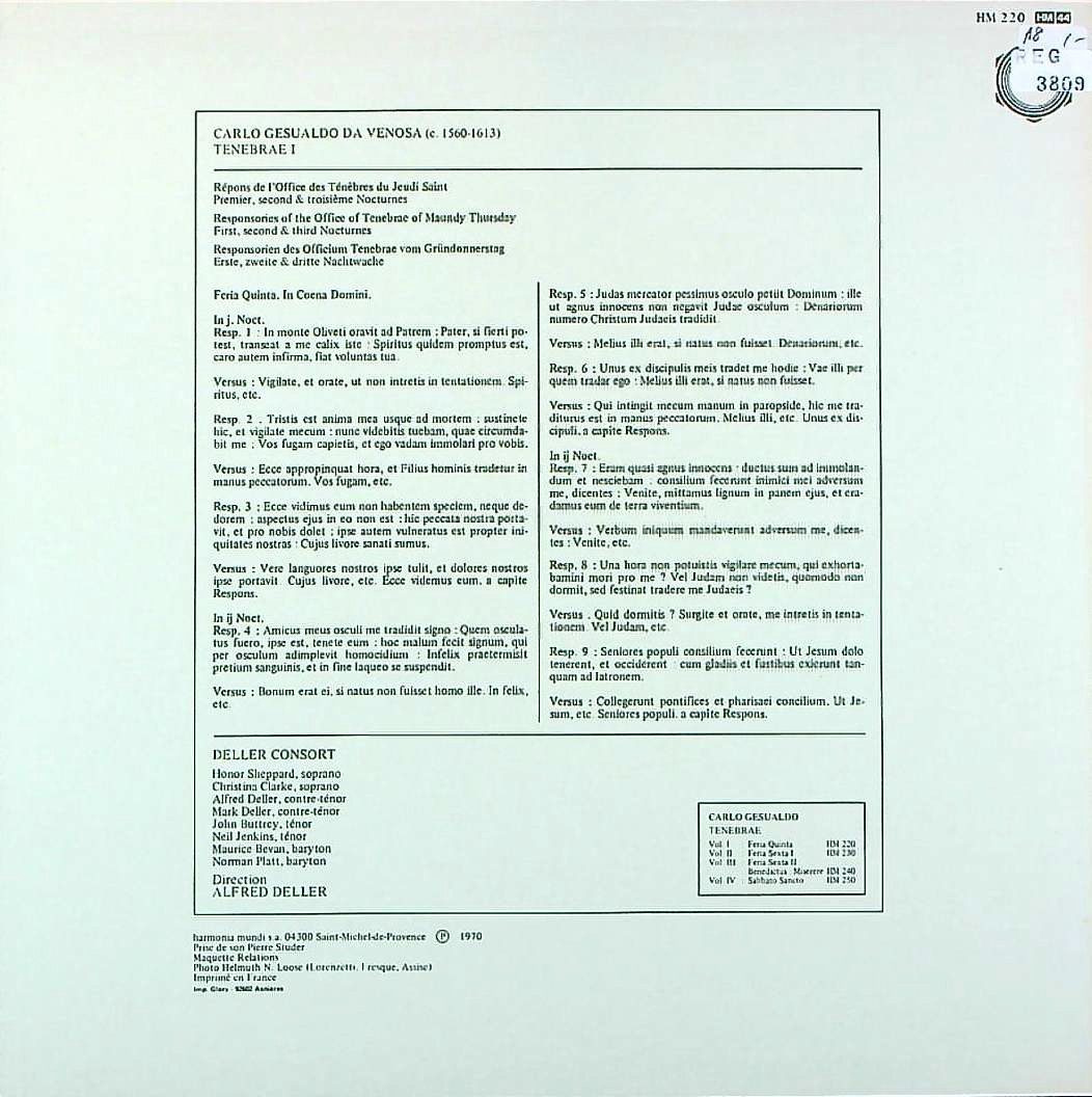 作品名:「ジェズアルド:テネブレVol.1」聖木曜日のためのレスポンソリウム(9曲), 他
