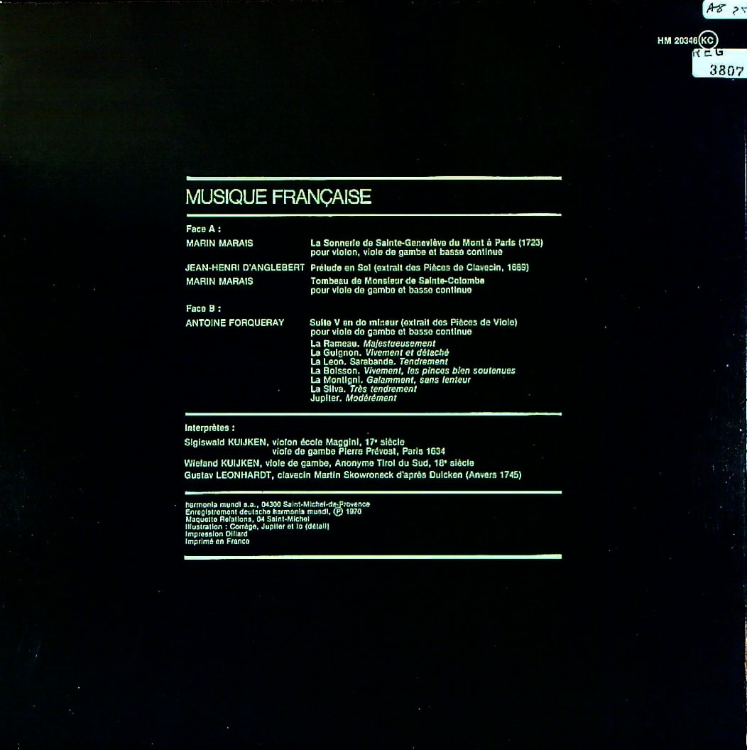 商品コード:REG-3807[独HM] S.クイケン(vn) W.クイケン(gamb) G.レオンハルト(cemb) / フランスの音楽/マレ, ダングルベール フォルクレ