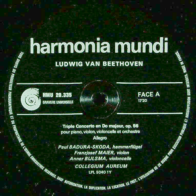 演奏者:P.バドゥラ・スコダ(hf)F.マイヤー(vn)A.ビルスマ(vc)コレギウム・アウレウム