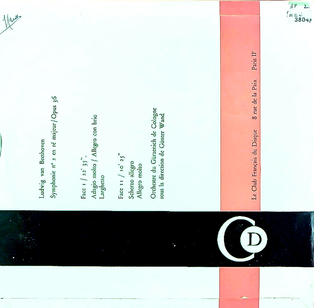 商品コード:REG-3804p[仏Club Français] G.ヴァント/ ベートーヴェン:交響曲2番