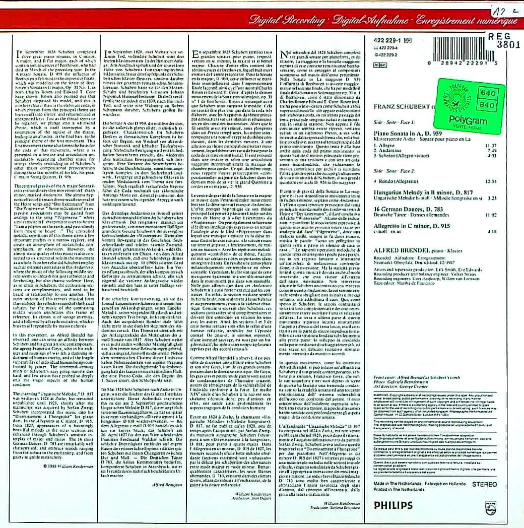 商品コード:REG-3801[欧PHILIPS] A.ブレンデル(pf) / シューベルト:Pfソナタ20番, ハンガリーのメロディ 他