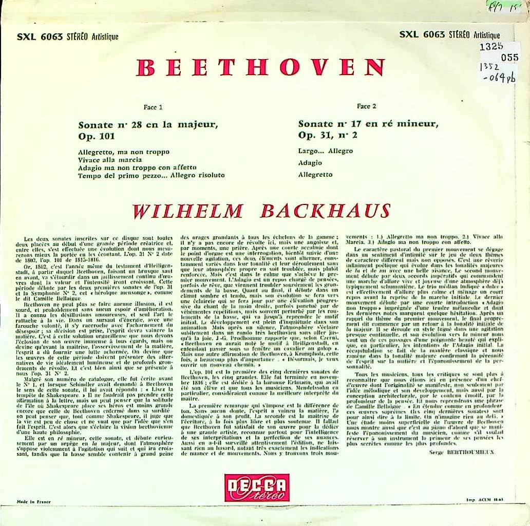 商品コード:1352-064pb[DECCA] W.バックハウス(pf) / ベートーヴェン:Pfソナタ28番, 17番
