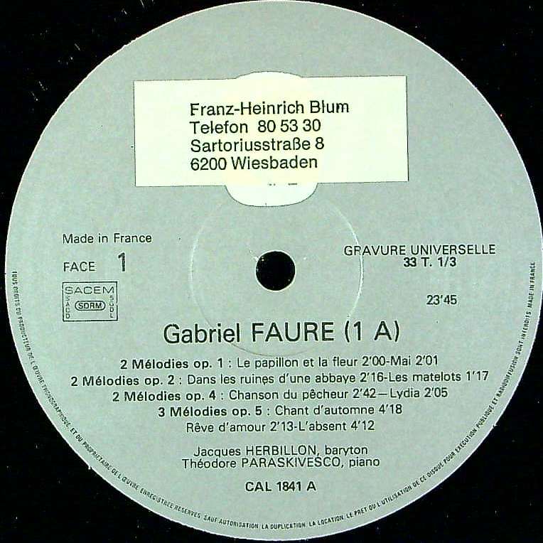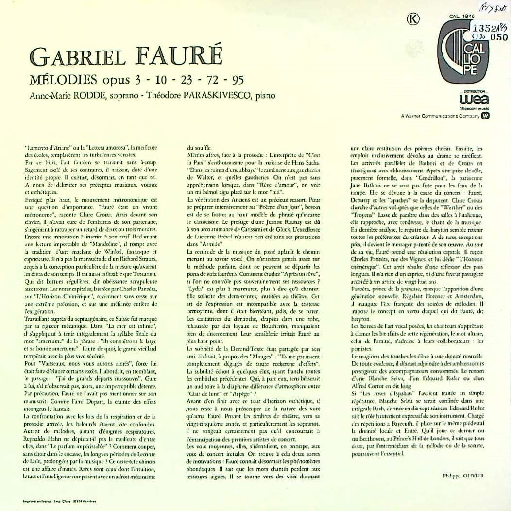 商品コード:1352-050[CALLIOPE] J.エルビヨン(br)/ フォーレ:歌曲集/ある日の詩, 5つのヴェネツィアの歌 他