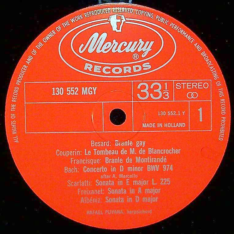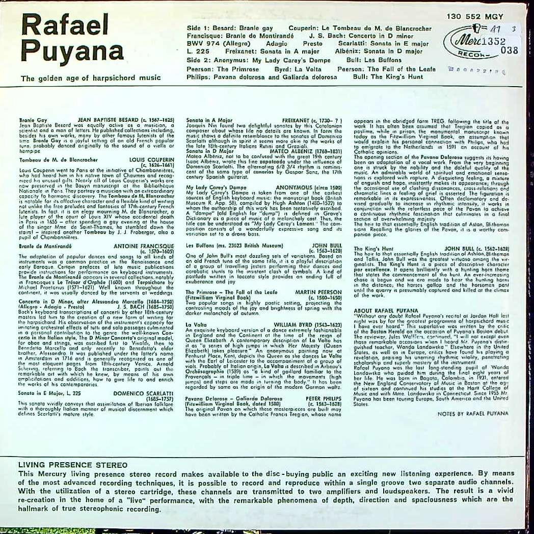 商品コード:1352-038[MERCURY] R.プヤーナ(cemb) / Cemb作品集/J.B.ブサール, L.クープラン, A.フランシスク 他