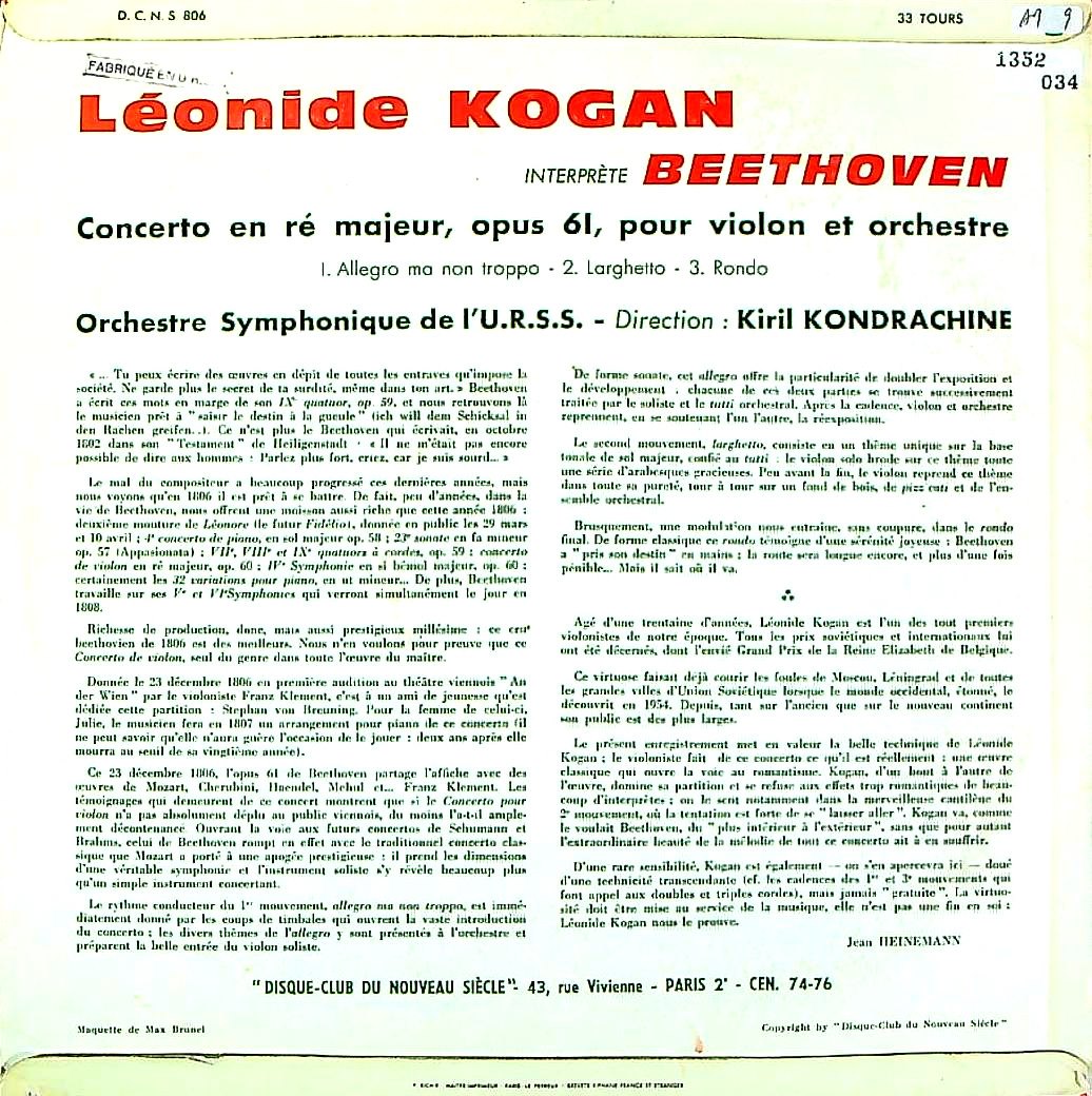 商品コード:1352-034[MELODIYA] L.コーガン(vn) / ベートーヴェン:Vn協奏曲