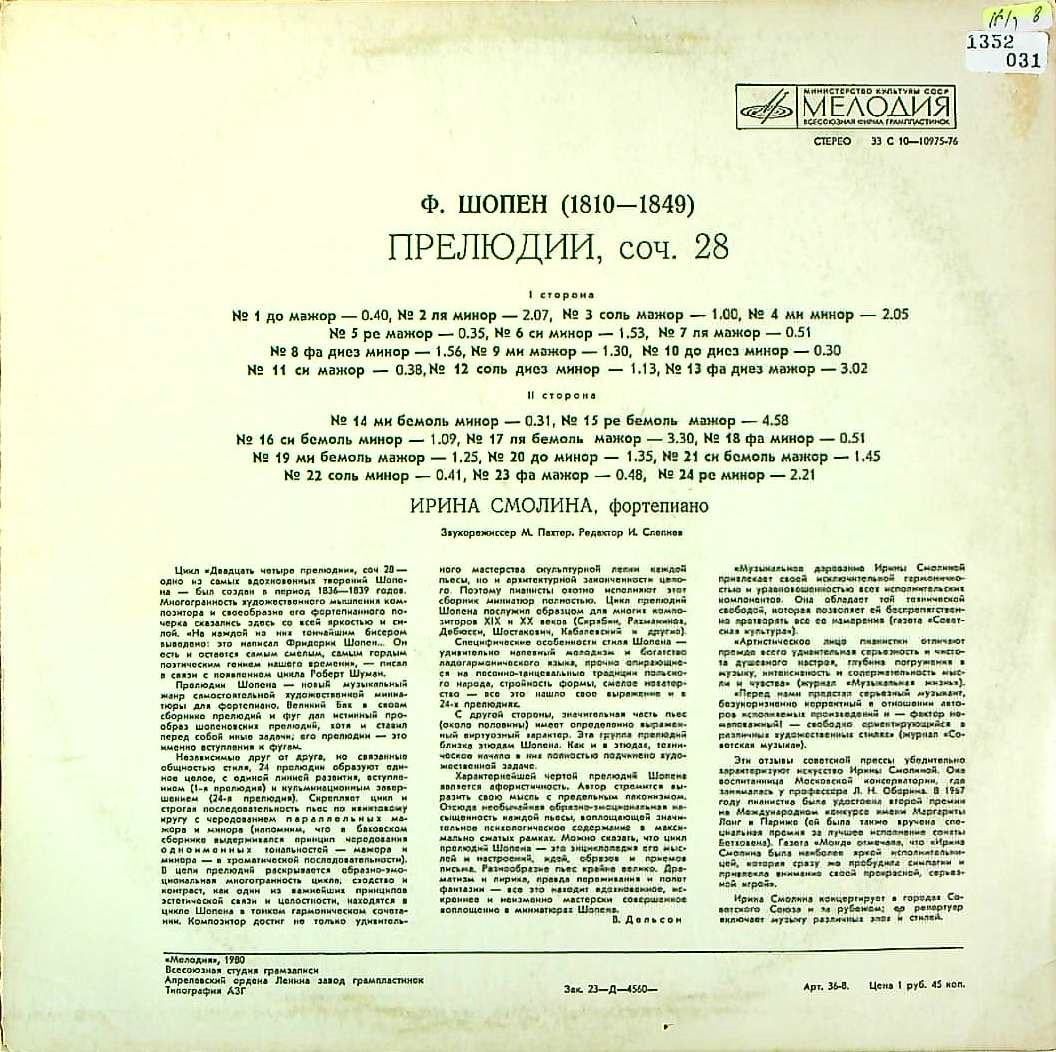 商品コード:1352-031n[MELODIYA] I.スモリナ(pf) / ショパン:24の前奏曲集(全曲)