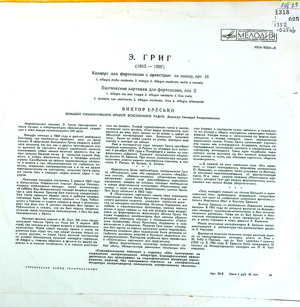 商品コード:1352-025nb[MELODIYA] V.エレシコ(pf)/ グリーグ:Pf協奏曲 他