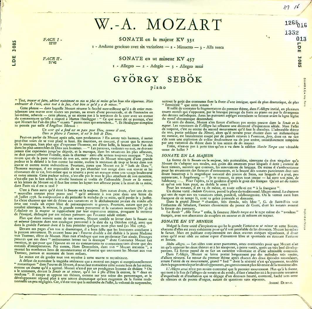 商品コード:1352-013[ERATO] G.シェベーク(pf) / モーツァルト:Pfソナタ11番K.331「トルコ行進曲付き」 , 14番K.457