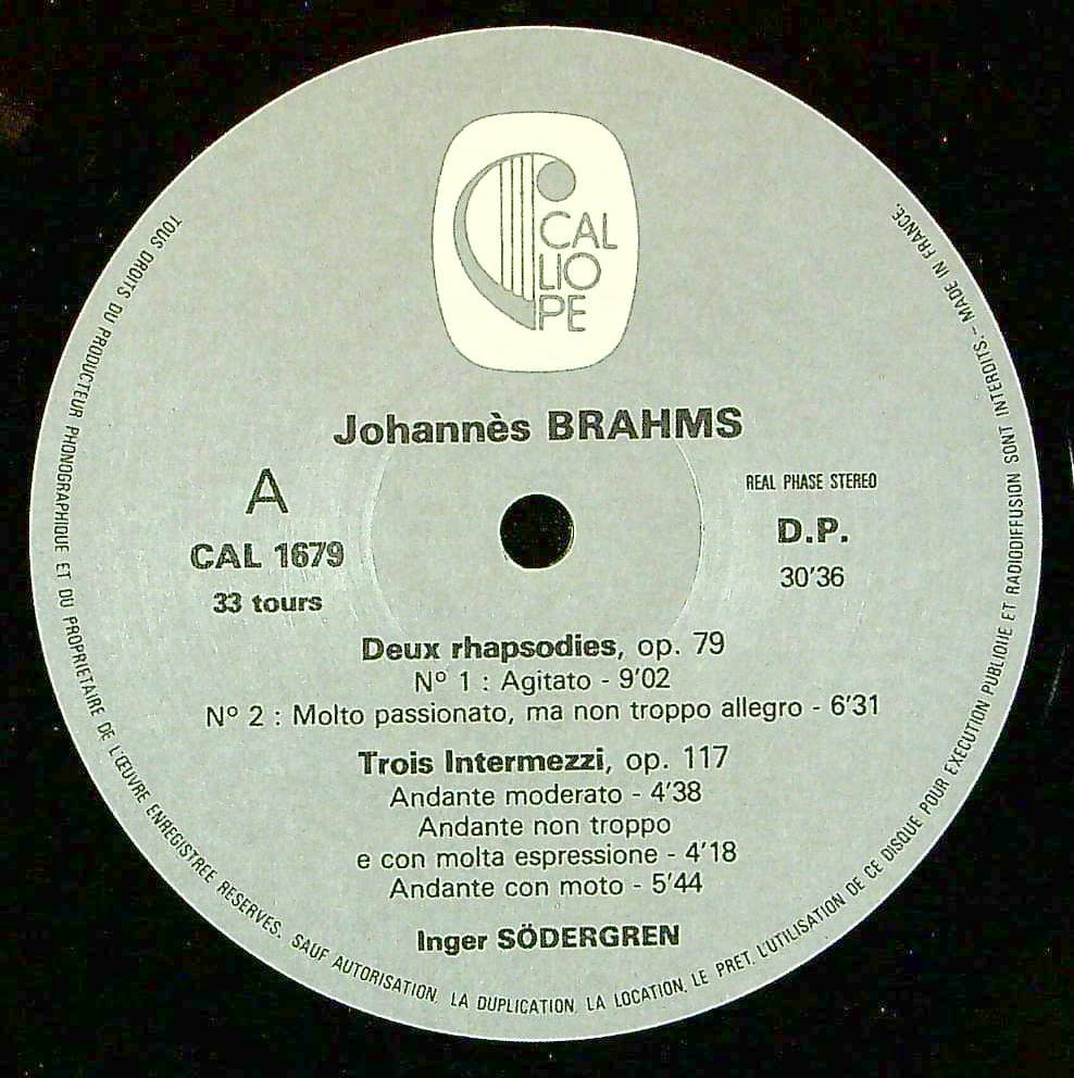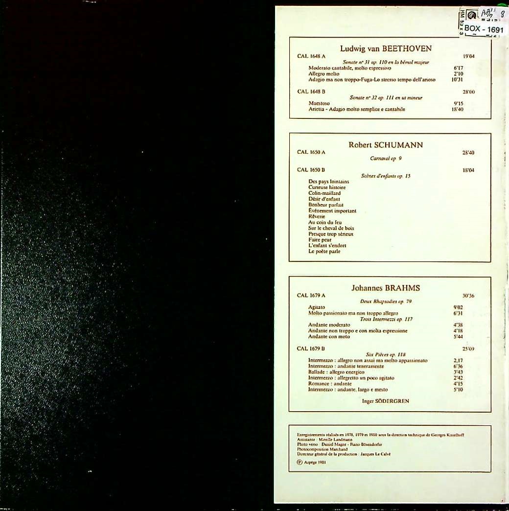 商品コード:BOX-1691[仏CALLIOPE] I.セーデルグレン(pf) / 「I.セーデルグレン・録音集」ベートーヴェン, シューマン, ブラームス