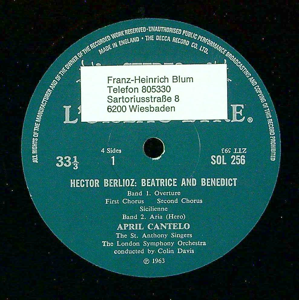 商品コード:BOX-1686t[英L'OISEAU LYRE] C.デイヴィス/ ベルリオーズ:ベアトリスとベネディクト(全曲)
