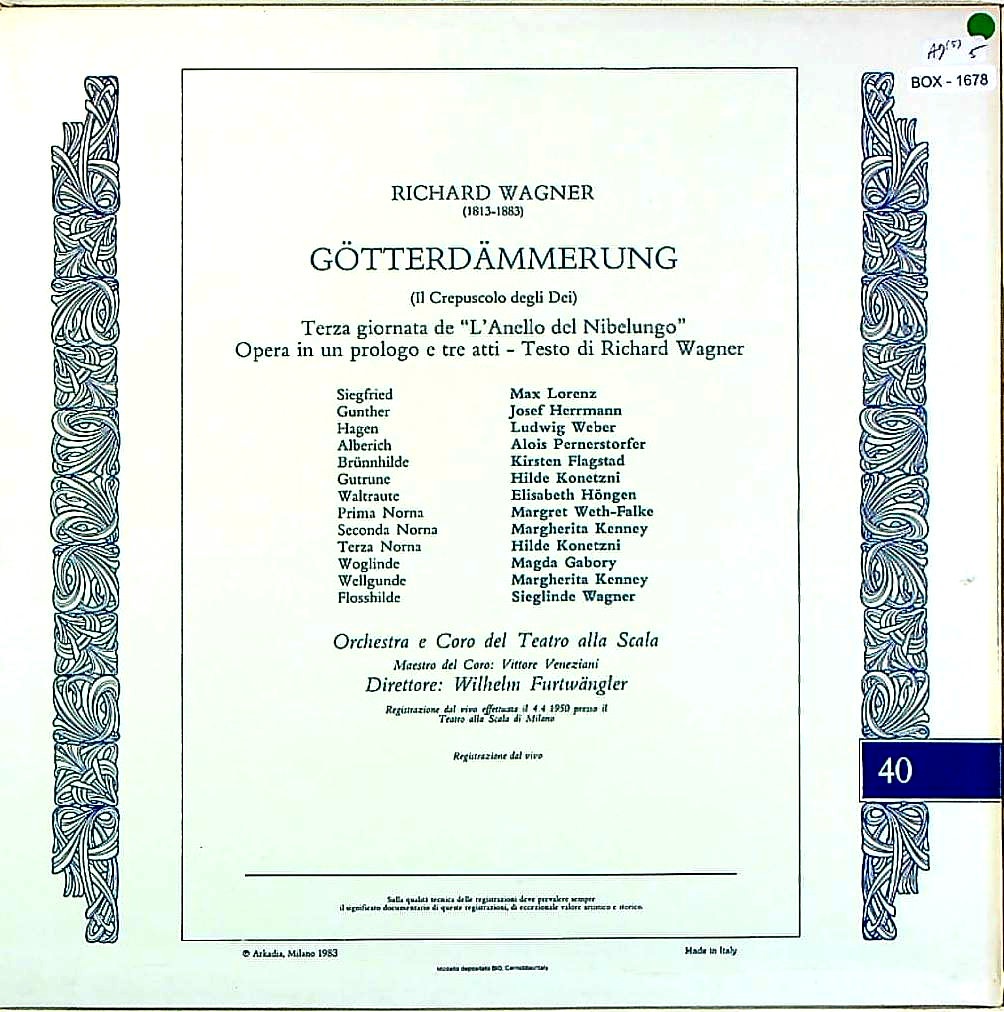 商品コード:BOX-1678[伊FONIT CETRA] W.フルトヴェングラー / ワーグナー:歌劇「神々の黄昏」(全曲)