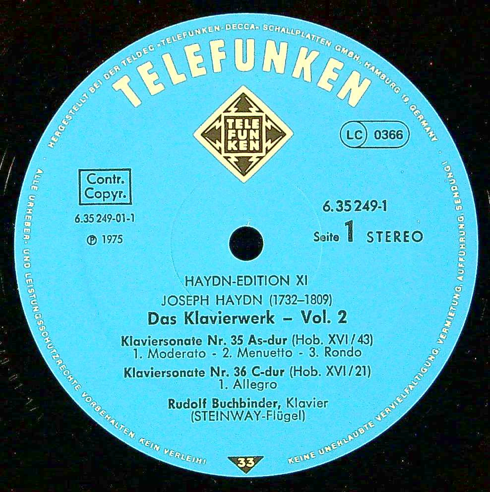 商品コード:BOX-1669[独TELEFUNKEN] R.ブッフビンダー(pf) / 「ハイドン・エディション-Ⅺ Pf作品集 Vol.2」Pfソナタ35-53番