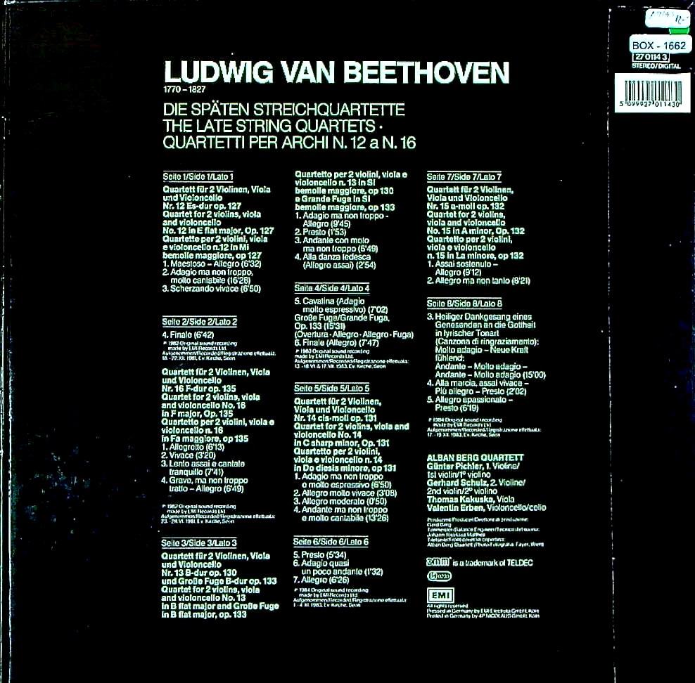 商品コード:BOX-1662[独ELECTROLA] アルバン・ベルクQt. / 「ベートーヴェン:後期SQ集」12-16番
