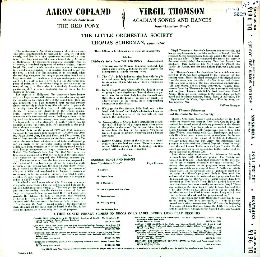 商品コード:REG-3829[米DECCA] T.シャーマン/ コープランド:子供組曲「赤い子馬」, トムソン:「ルイジアナ物語」~アカディアンの歌と踊り