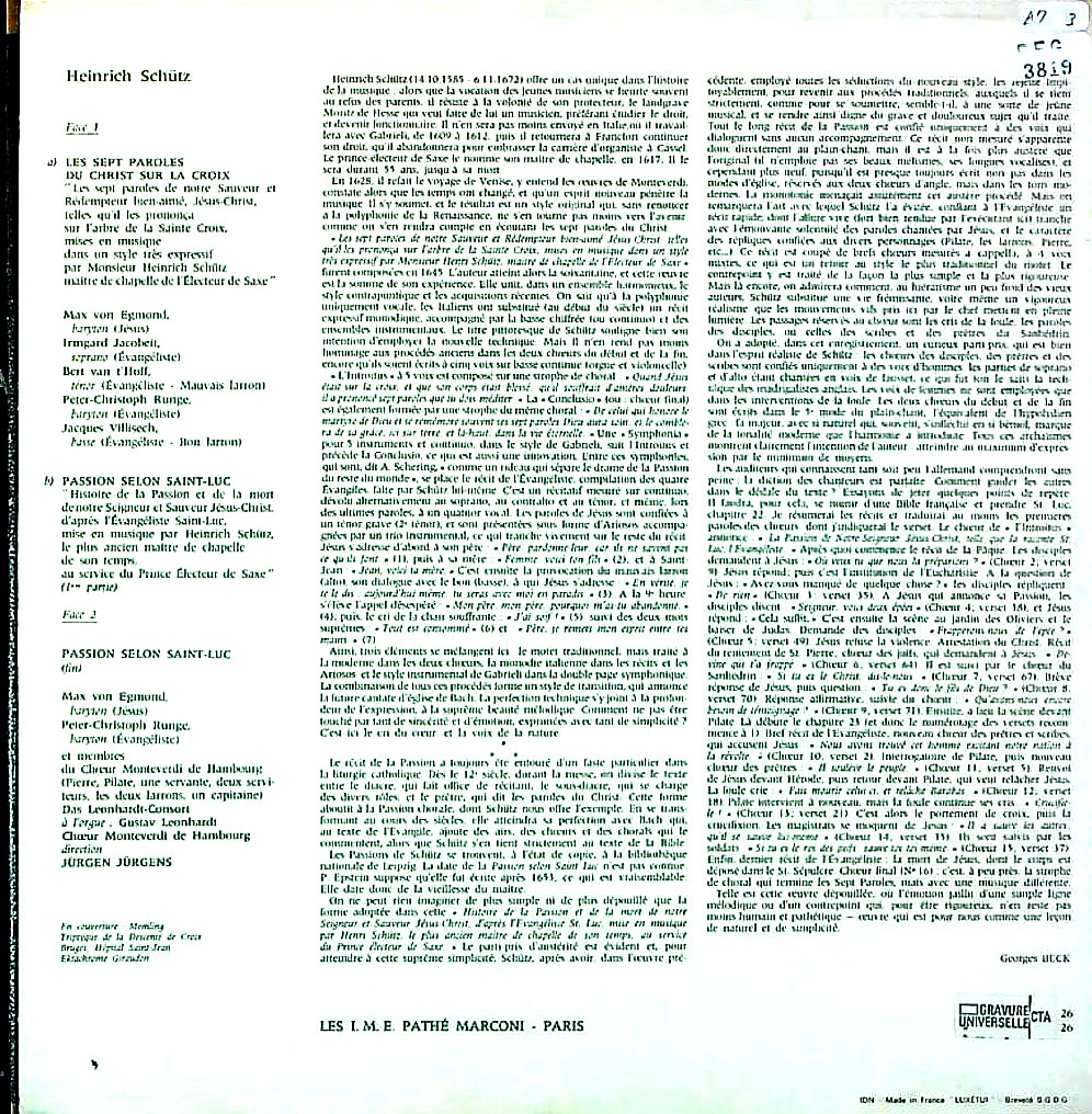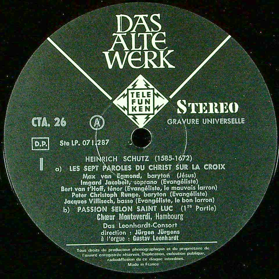 商品コード:REG-3819[仏TELEFUNKEN] J.ユルゲンス/ シュッツ:「十字架上のキリストの最後の7つの言葉」他