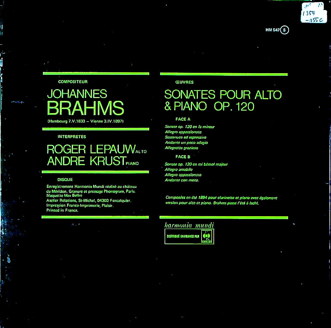 商品コード:1354-055c[HM] R.ルポ-(va)/ ブラームス:Vaソナタ1番, 2番