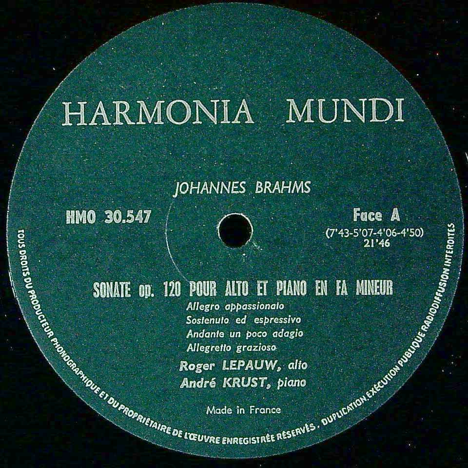 商品詳細:非常に珍しいHarmonia Mundiのオリジナル録音。1964年頃モノラル/ステレオでリリースされた。ドイツ側でもリリースされたと思われが間違いなくフランス録音と思われる。ヴィオラ奏者ロジェ・ルポーは生れ年不明のヴィオラ奏者。世にヴァイオのソリストだけで活動できるヴァイオ奏者はいない。それだけヴィオラがソロをとれる曲がないからである。ルポーはこれまでのチッコリーニとモーツァルトのK.498で共演しており、パリ管弦楽団弦楽四重奏団(Quatuor À Cordes De L'Orchestre De Paris)のメンバーとして共演している。クラリネットのアンリ・ドリュアールとK.581やブラームスのクラリネット五重奏曲Op.115等の録音もあった。またそれ以前にLe Quatuor N.D.M.という聴いた事のない弦楽四重奏団にも所属していた。この団体は幸松肇 氏の「世界の弦楽四重奏団とそのレコード」にも掲載されていないマイナーな団体でN.D.M.の意味は不明だがメンバーは解かっている。 Michel Ganot,/Robert Gendre/Roger Lepauw/Robert Bexの4人。チェロのRobert Bexは良く知られたソリストで多くの録音を出している。元々パリ国立歌劇場o.の首席チェロ奏者であった。N.D.M.弦楽四重奏団の詳細は全く不明。その団体のヴィオラ奏者であるロジェ・ルポーがソリストとしてブラームスのVaソナタを録音という快挙である。しかし母体であるN.D.M.弦楽四重奏団やパリ管弦楽団弦楽四重奏団があまり知られていないのは釈然としない。ブラーム晩年の傑作として、クラリネットでの演奏も多い、2つのソナタ。聴いてみると、ルポーのソロはまるでヴァイオリン奏者のように実に明快に旋律を刻むはっきりとした豊かな音を出している。所謂前に出る音である。ヴァイオリンより旋律を奏でることが不利になるヴィオラだが、ここまでくっきりとした音で演奏されたヴィオラ・ソナタは思い浮かばない。重音奏法も取り入れ、なかなか聴かせる演奏である。クラリネット演奏も良いが、ヴィオラ版ならばこの録音は是非お勧めしたい。1960年代中期以前の良い時期であり、音も腰の座った低い音が出ている。