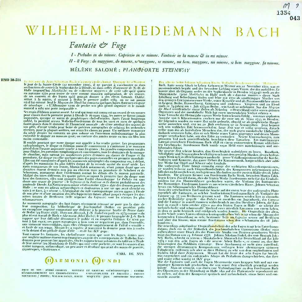 商品コード:1354-043[HM] H.サロメ(pf) / W.F.バッハ:Pf作品集/前奏曲F.19, カプリッチョF.29 他
