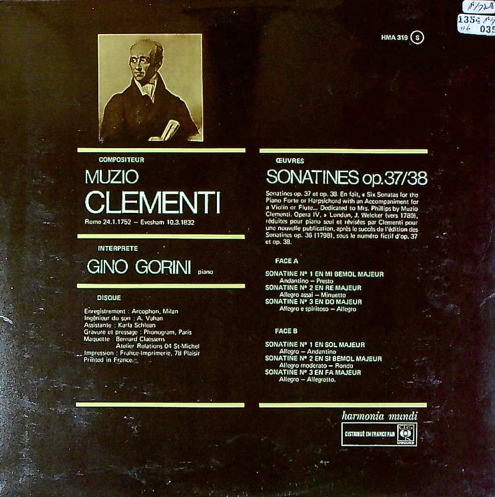 商品詳細:ジーノ・ゴリーニ (1914-1990)はイタリア・ヴェネツィア生まれのピアニスト、作曲家。ヴェネツィア音楽院でリノ・タリアピエトラとジャコモ・アゴスティーニに師事。また、ジャン=フランチェスコ・マリピエロに作曲を、ウラディミール・ホロヴィッツにピアノを師事した。1938年、ウィーンのピアノ・コンクールで優勝した。1940年から40年間、ヴェネツィア音楽院のピアノ教授を務めた。ピアニストとしてイタリア国内外でツアーも行った。ピアニストとしての長いキャリアの中で、ゴリーニはジャン=フランチェスコ・マリピエーロの影響を受け、オットリーノ・レスピーギとジャン=フランチェスコ・マリピエーロを中心とした、いわゆる「80年代」の音楽の最も優れた解釈者となった。ゴリーニは、もちろん、もう一人の重要な師であるタリアピエトラと、この2人の師であるフェルッチョ・ブゾーニの作品も世に知らしめた。ピアニストのセルジオ・ロレンツィとのデュオでは、ヨハネス・ブラームス、F. ブゾーニ、クロード・ドビュッシー、アントニン・ドヴォルザーク、ドミトリー・ロスタコヴィッチの2台ピアノ作品の素晴らしい録音を残した。ゴリーニは、ムツィオ・クレメンティのピアノ独奏曲も数多く録音した。ゴリーニは作曲家でもあり、管弦楽、室内楽、ピアノ作品等多くを出版している。ムツィオ・クレメンティ(1752 - 1832)はイタリア・ローマ生まれの作曲家、ピアニスト、教師、編集者、出版業者、楽器製造業者。クレメンティは約100曲のピアノ・ソナタを残しており、特に1780年代にウィーンとロンドンで書かれたソナタは古典派音楽の交響的ソナタとしてベートーヴェンの先例をなす。実際、ベートーヴェンは、ピアノ曲に関してはモーツァルトの作品よりもクレメンティの方がピアニスティックで素晴らしいと評価している。 しかし、よく知られた作品は、初級の練習用教材であるソナチネ作品36の第1番から第6番までの全6曲であり、ソナチネ・アルバム第1巻にも収録されている。また、ピアノフォルテまたはハープシコードのためのヴァイオリンまたはフルートの伴奏付きの6つのソナタ作品4も残している。これは後に、伴奏パートが省略されて、ピアノ・パートに若干編集を加えてソナチネとして出版され、前半の第1番~3番が作品37、後半の第4番~6番が作品38としてそれぞれ3曲に分割された。作品37の第2番(原曲作品4の第1番)と作品38全曲(原曲作品4の第4番~6番)がソナチネ・アルバム第2巻に収録されている。ピアノ・ソナタ全曲録音は1990年代にようやく行われ、ピエトロ・スパダを中心に10人のピアニストに分担された。CDの全集が出る以前のLP期ではゴリーニの数枚のLPが元祖的な存在であった。ゴリーニは多くの作品の録音を行ったが取り分けクレメンティの評価が高い。なお前半の1枚であるソナチネOp.36はHMの器楽シリーズである「若いピアニストのためのレパートリー-3」として新デザインでリリースされている(レコード番号は同じ)。