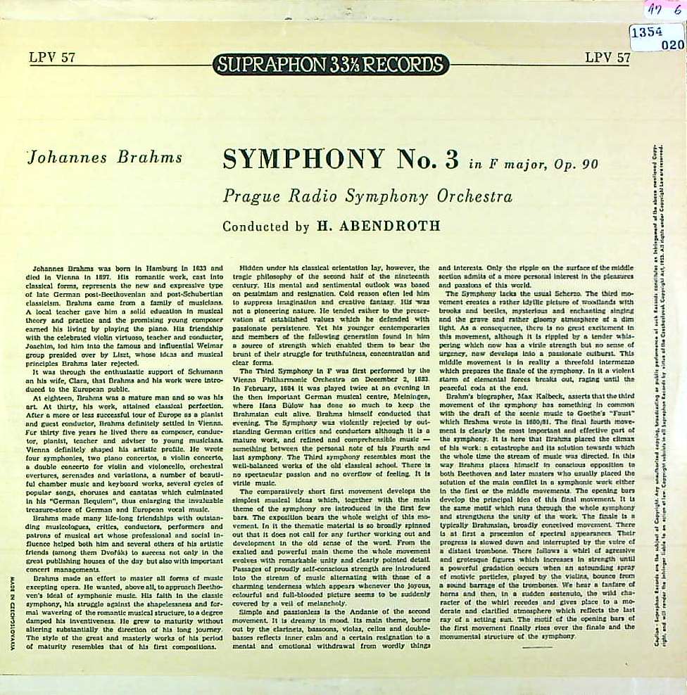 商品コード:1354-020t[SUPRAPHON] H.アーベントロート/ ブラームス:交響曲3番