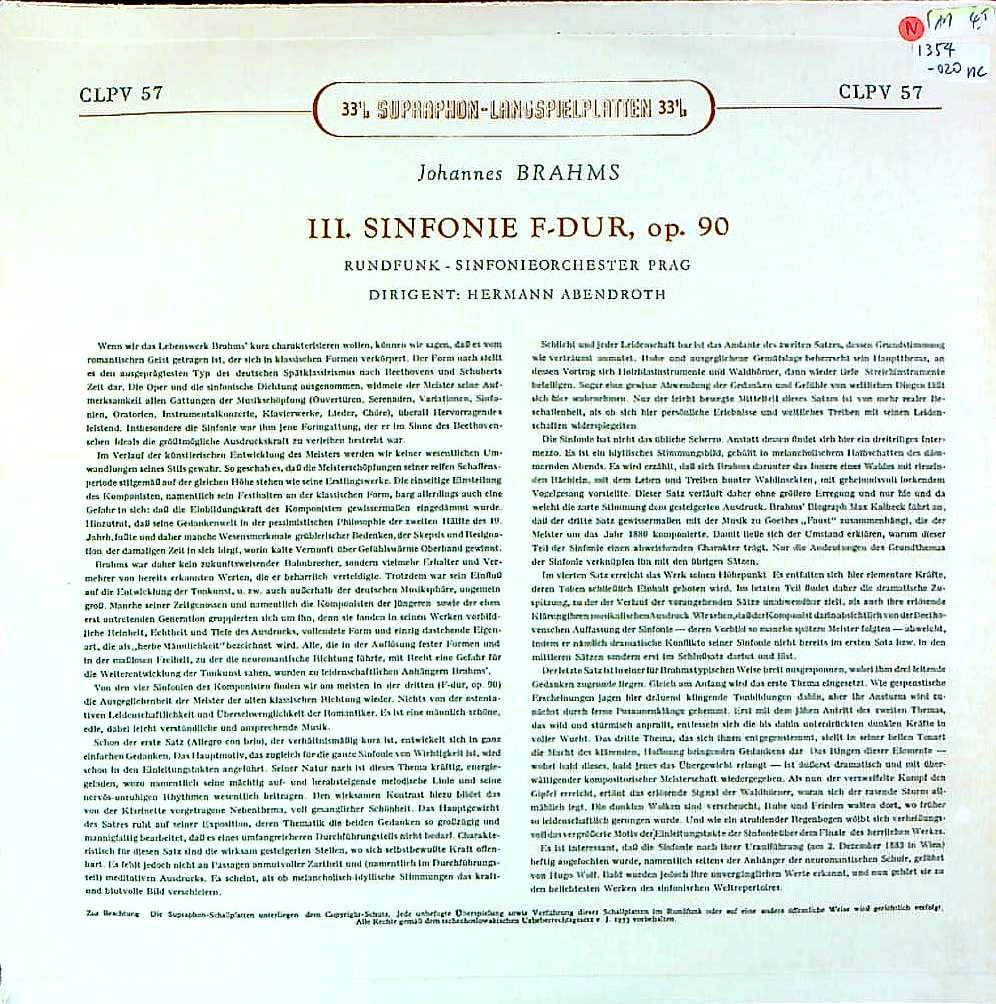 商品コード:1354-020nc[SUPRAPHON] H.アーベントロート / ブラームス:交響曲3番