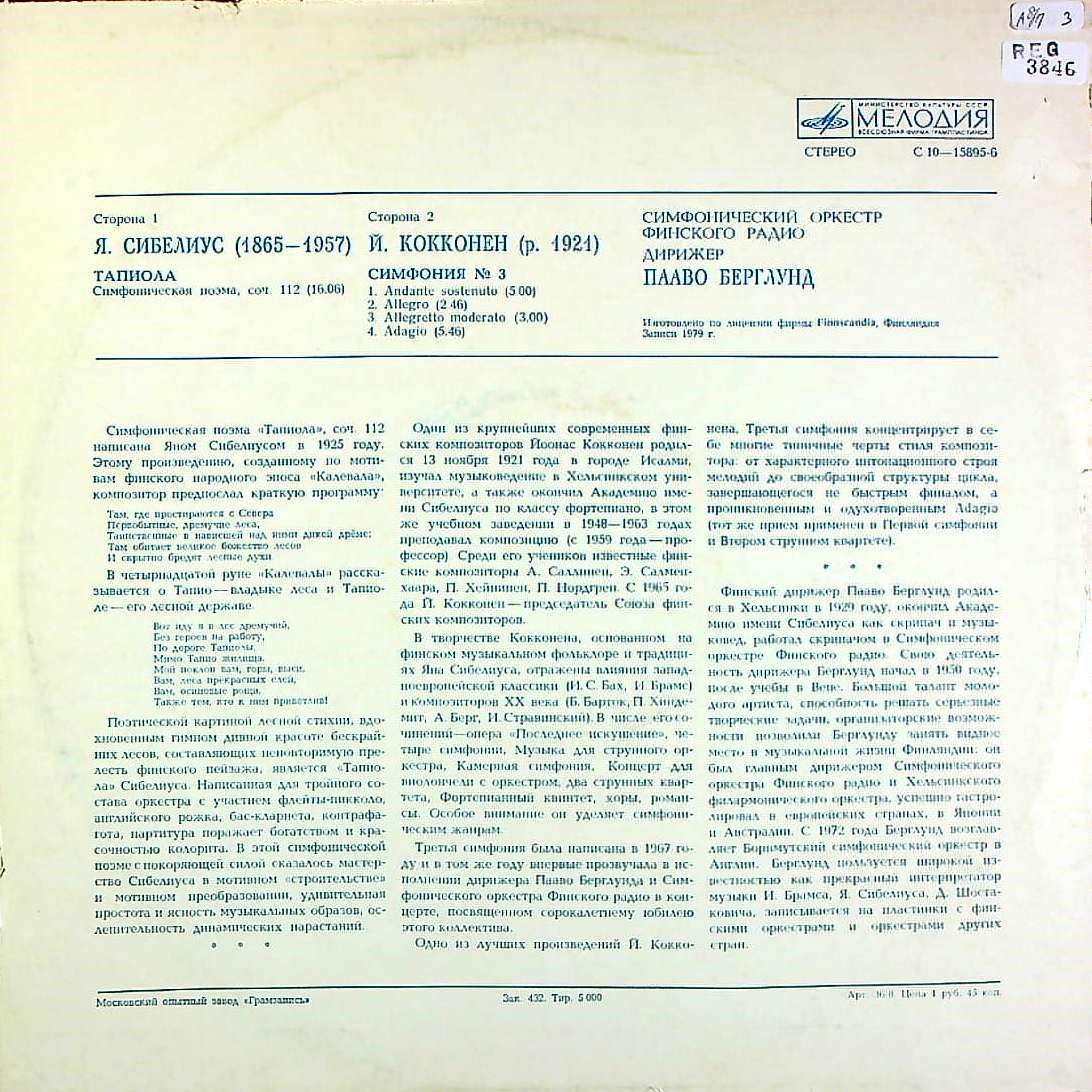 商品コード:REG-3846[露MELODIYA] P.ベルグルンド/ シベリウス:交響詩「タピオラ」, コッコネン:交響曲3番