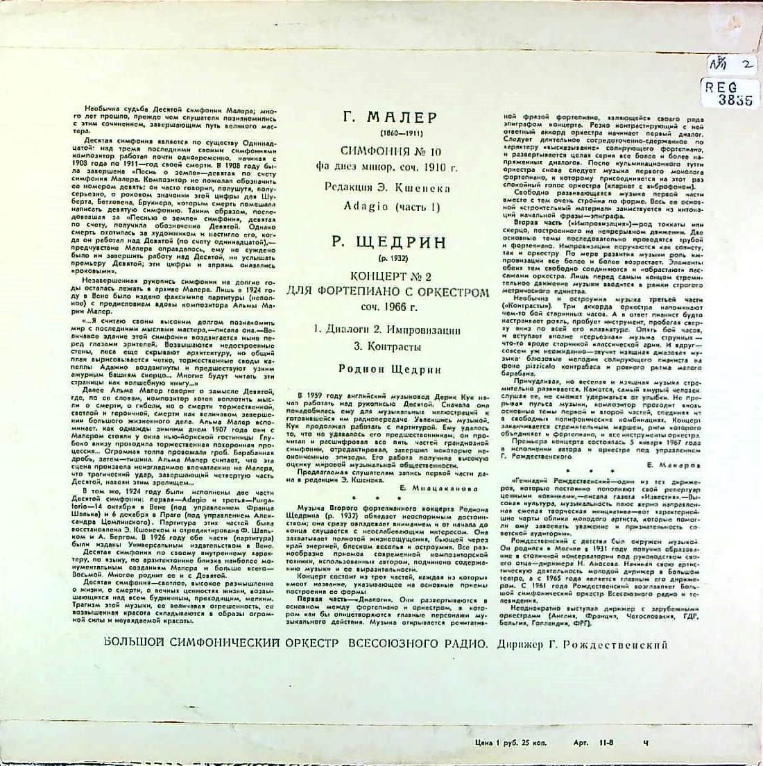 商品コード:REG-3835[露MELODIYA] G.ロジェストヴェンスキー/ マーラー:交響曲10番~1楽章(クルシェネク版), シチェドリン:Pf協奏曲2番