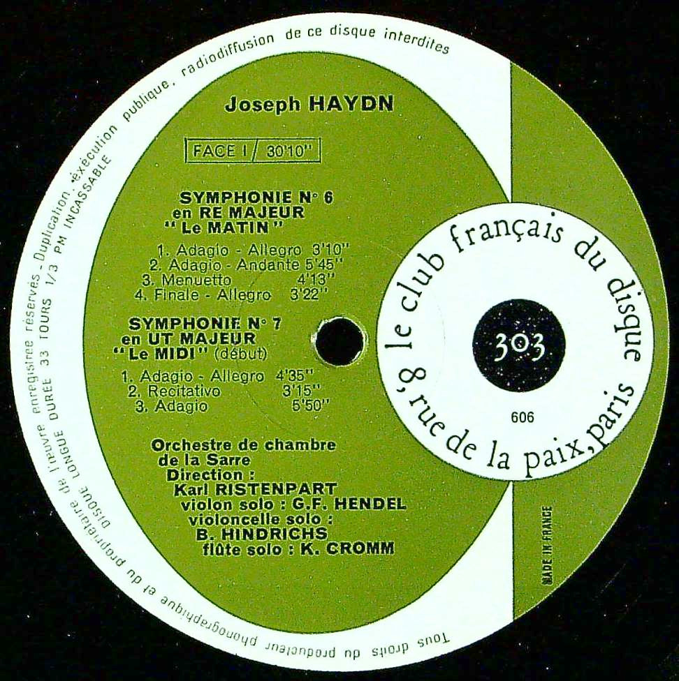 商品コード:1355-054[Club Français] K.リステンパルト/ ハイドン:交響曲6番「朝」, 7番「昼」, 8番「夕べ」