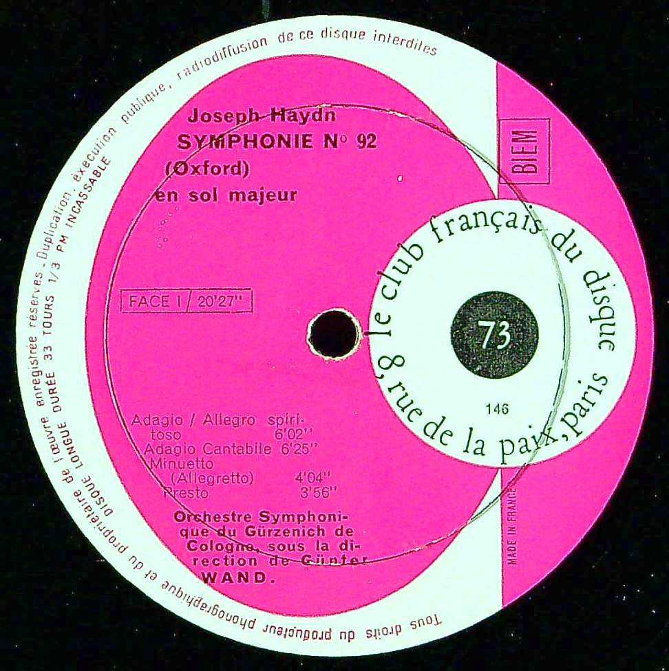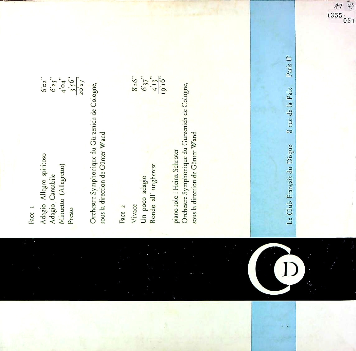 商品コード:1355-051[Club Français] H.シュレーター(pf) G.ヴァント/ ハイドン:交響曲92番「オクスフォード」, Pf協奏曲