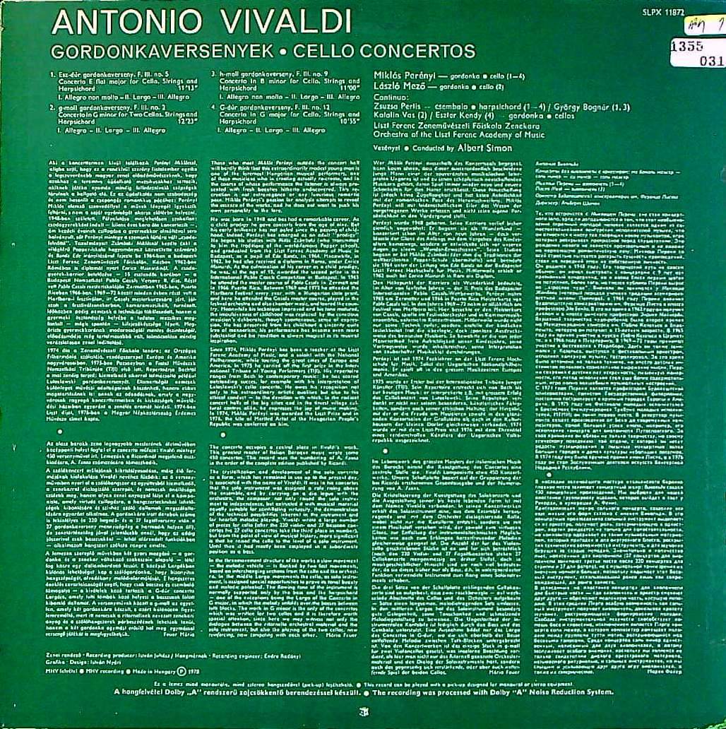 商品コード:1355-031n[Hungaroton] M.ペレーニ, L.メゼー(vc)/ ヴィヴァルディ:Vc協奏曲集(4曲)