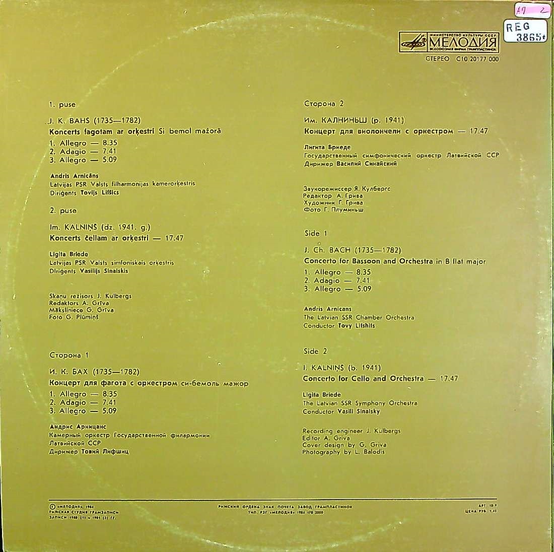 演奏者:A.アルニカーンス(fg)T.リフシッツ指揮ラトビア国立室内o.(A面)/L.ブリーデ(vc)V.シナイスキー指揮ラトビア国立so.(B面)