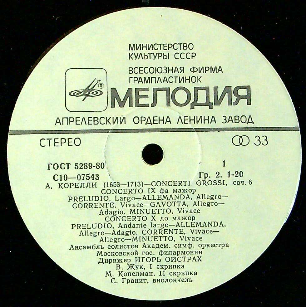 演奏者:I.オイストラフ指揮 モスクワpo.ソリスト・Ens.