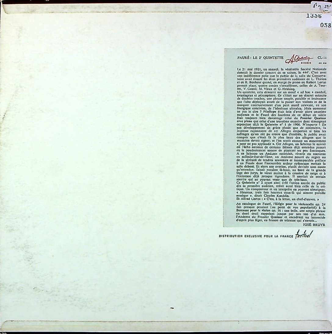 商品コード:1356-058[Charlin] G.ティッサン・ヴァランタン(pf) ORTFQt./ フォーレ:エレジー, Pf五重奏曲2番