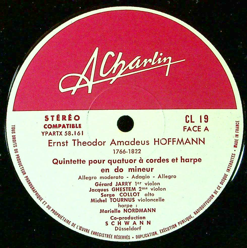 商品コード:1356-057[Charlin] M.ノルマン(hp) J.ゲステム(vn) フランス弦楽トリオ/ E.T.A.ホフマン:Hp五重奏曲, Pfトリオ