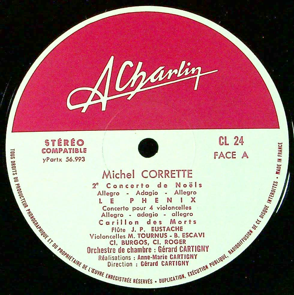 商品コード:1356-056b[Charlin] G.カルティニー/ コレット:クリスマス協奏曲2番, 不死鳥(4Vc協奏曲), 葬礼の鐘 他