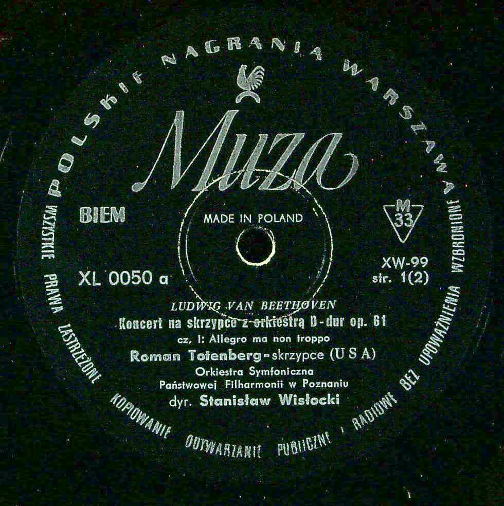 商品詳細:ロマン・トーテンベルク( 1911 - 2012)はポーランド・ウッチ出身のヴァイオリニスト。6歳でヴァイオリンを始め、ミエチスワフ・ミハロヴィチにヴァイオリンを学ぶ。1923年にワルシャワ・フィルハーモニー管弦楽団と共演してデビューを果たし、その後、ベルリンに留学してカール・フレッシュ門下となった。1931年には国際メンデルスゾーン賞を受賞し、パリでピエール・モントゥーやジョルジェ・エネスクらと共演し、ダリウス・ミヨーの知己を得た。1935年にはイギリスとアメリカに演奏旅行を行い、成功を収めた。1938年にはアメリカに移住している。その後は、アメリカを中心に演奏活動を展開し、アルトゥール・オネゲルの無伴奏ヴァイオリン・ソナタのアメリカ初演、ウィリアム・シューマンのヴァイオリン協奏曲、クシュシュトフ・ペンデレツキのカプリッチョなどの初演を担当した。1961年に米国に渡り、1961年から1978年まではボストン大学の弦楽器部門の主任教授を務めていた。ボストン大学時代にWQXR四重奏団(ロマン・トーテンベルク、ダニエル・ギレ、ラルフ・ハーシュ、アヴトン・トワードフスキー)を結成して米国レーベルに録音を行っている。'60年代から、半ば現役を退いた形で教育者となる。しかし85歳まで求めに応じて私的な演奏を行っていたようである。録音は少なく、渡米前の1950年代録音は数点しかない。その中で協奏曲は恐らくバッハ、ベートーヴェン、ヴェイニャフスキ/シマノフスキの3点だけと思われる。これら3点のレコード番号は連番なのですぐわかる。バッハ:XL 0049、ベートーヴェン:XL 0050、ヴェイニャフスキ/シマノフスキ:XL 0051である。1950年代のMUZAで協奏曲を録音できるヴァイオリン奏者はトーテンベルクしかいなかったのではないだろうか?今回はベートーヴェン。MUZAで最初のベートーヴェン:Vn協奏曲で1959年モノラルのみで発売された。実に滑らかな音色で、堂に入った名人級の腕前であることは確か。デリカシ―に富んだ表情でまるでSP期のような雰囲気がある。1970年代にドイツImpromptuレーベルにバッハの無伴奏全曲の録音もあるが、まずは最初期録音であるベートーヴェン:Vn協奏曲をお試し戴きたい。ポーランドが世界に誇る国宝級のヴァイオリン奏者であったことが理解されるだろう。トップクラスの演奏であることは疑いようがない。