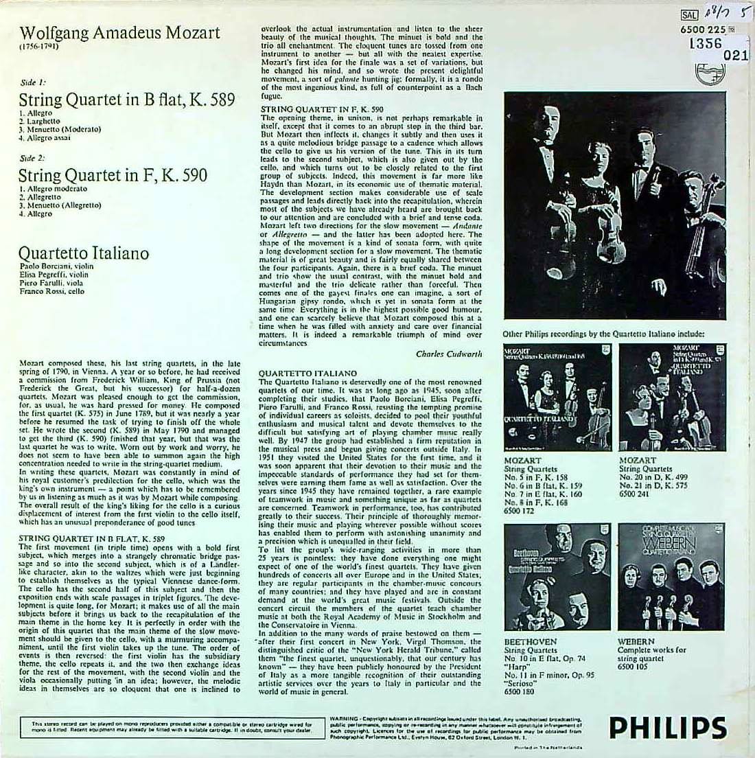 商品コード:1356-021[PHILIPS] イタリアQt. / モーツァルト:弦楽四重奏曲全集-4/弦楽四重奏曲22番K.589, 23番K.590