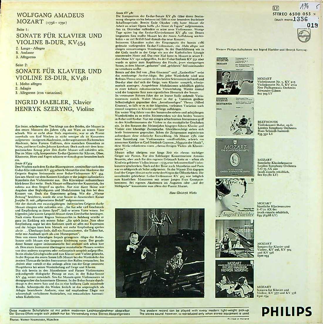 商品コード:1356-019[PHILIPS] H.シェリング(vn) I.ヘブラー(pf) / モーツァルト:Vnソナタ全集-3/Vnソナタ40番K.454, 41番K.481